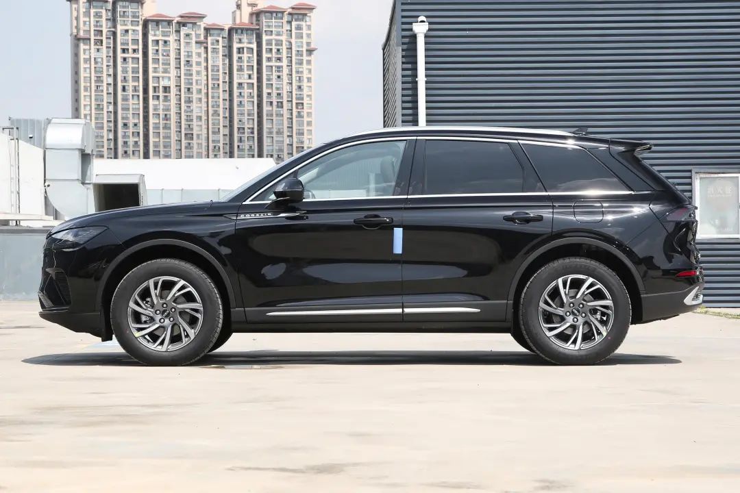 侧面造型方面,车顶带着明显的弧度,配备有行李架以及鲨鱼鳍,而且还营造出了悬浮式车顶,属于比较流畅的线条;腰线采用了贯穿式设计,从前翼子板延伸到车尾,点缀出了车身侧面的层次感;轮眉和侧裙部分设计有隆起的筋线,带来了一定的肌肉感;轮毂采用了多幅式造型,给人的感觉比较大气。