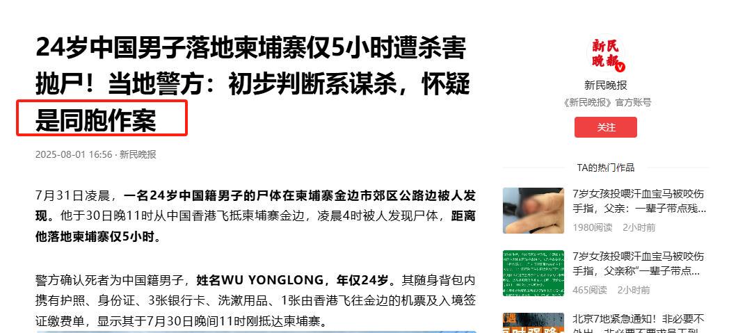 近年来,柬埔寨涉及中国公民的案件有所增加。