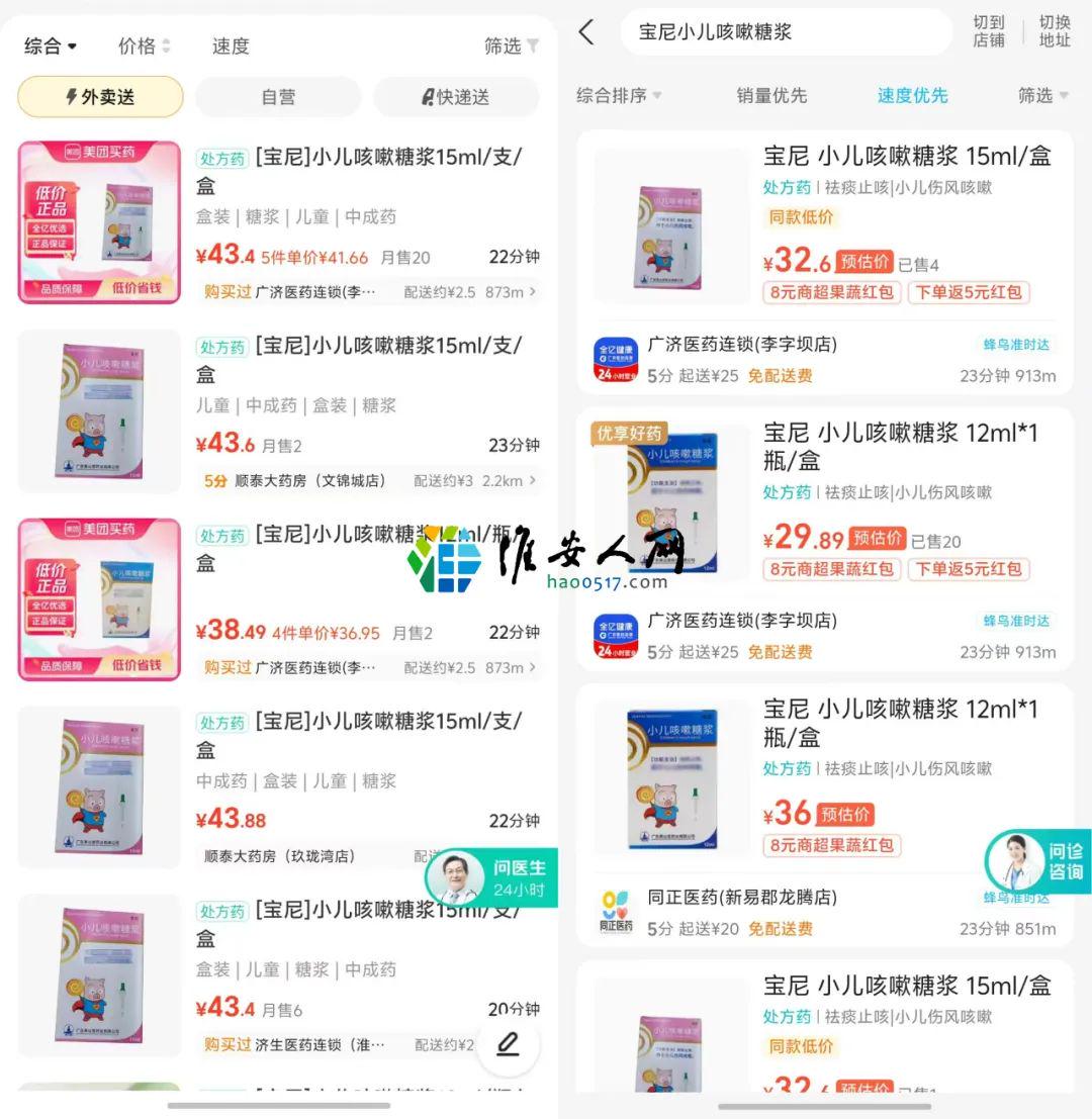 网友查询的小儿咳嗽糖浆线上价格