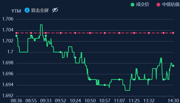 二、十年期国债收益率:1.6975-0.006%(国债收益率越涨,债市越跌,两者反向关系)
