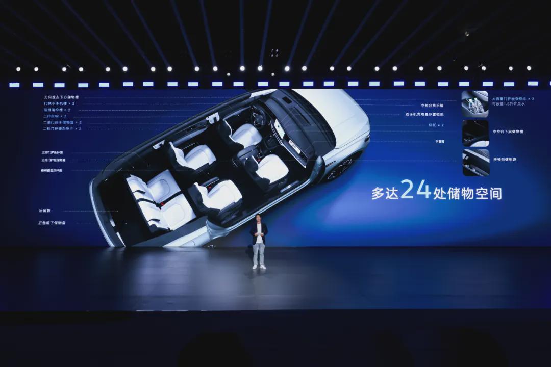 1、空间重构生活场景。5168mm车长和2980mm轴距换来了87.2%的得房率,不是用宣传语堆出来,而是用数字掰给你看。第三排头部空间991mm、坐垫高度311mm,成年人坐进去腿脚能舒展;哪怕满员,后备厢还能塞下4个登机箱和一辆折叠童车。6座版给到中间通道和头等舱座椅,7座版可以秒变纯平大床,商务、家庭、露营三种状态随手切换。