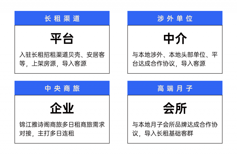 更值得关注的是,灵活长短住的中高端酒店产品,同时也打破了传统酒店渠道单一的困局。以憬黎为例,其与长租平台、涉外和头部住房中介以及多行业企业的异业合作,让渠道变得多元,意味着客群的面貌也被打开了新的局面。