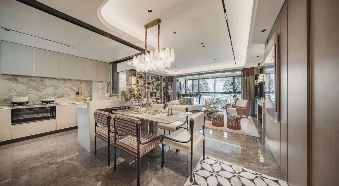 御制:入户玉拼花、宋纹隔栅屏风与博世厨电、全屋智能系统碰撞,让其不止于材质,更在于生活的便捷与格调。