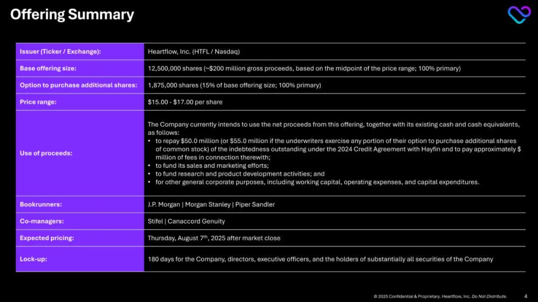 HeartFlow称,IPO所得款项用于偿还债务、资助销售和营销、研发和产品开发活动以及其他一般公司用途。