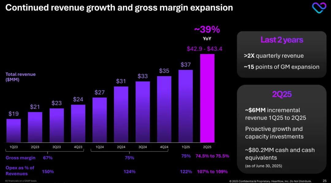 HeartFlow在2025年第一季度营收为3721万美元,上年同期为2684万美元;净亏损为3234.5万美元,上年同期的净亏损为2093万美元。