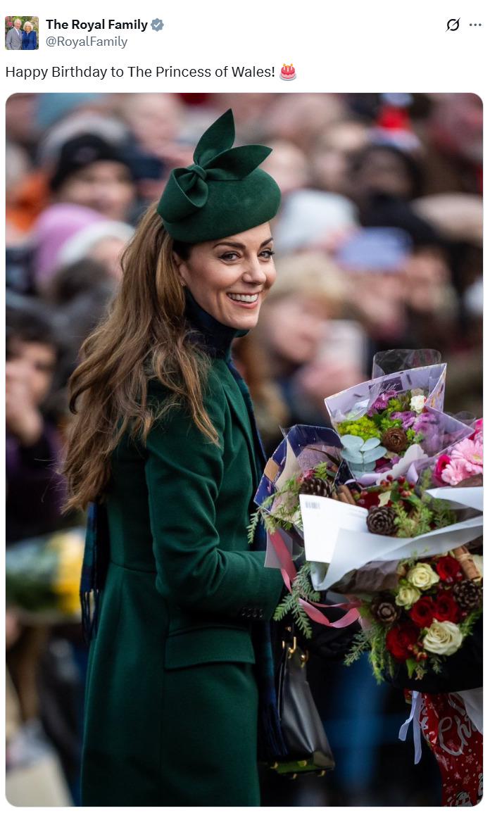 今年早些时候,凯特王妃生日的时候,王室的官方账号是亲自送上了祝福。