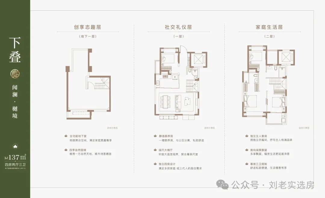 480万起,在南翔、嘉定新城也许只能买到一个紧凑型的小三房,但在这里,能够直接上车有天有地的叠加别墅!大尺度厅堂、星空露台、地下空间.......尺度进阶一步到位。1叠加产品建面约137㎡下叠,四房两厅三卫全能格局,非常适合二娃家庭以及三代同堂。