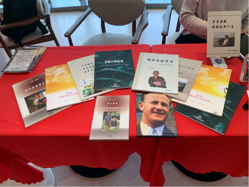 一个放满了“书”的展位吸引了记者,走近一看,原来是一本本老人专属回忆录。老人们只要做两件事,先通过小程序与AI进行交流对话,再上传一些充满回忆的照片,最终便会生成一本属于自己的独一无二的回忆录。
