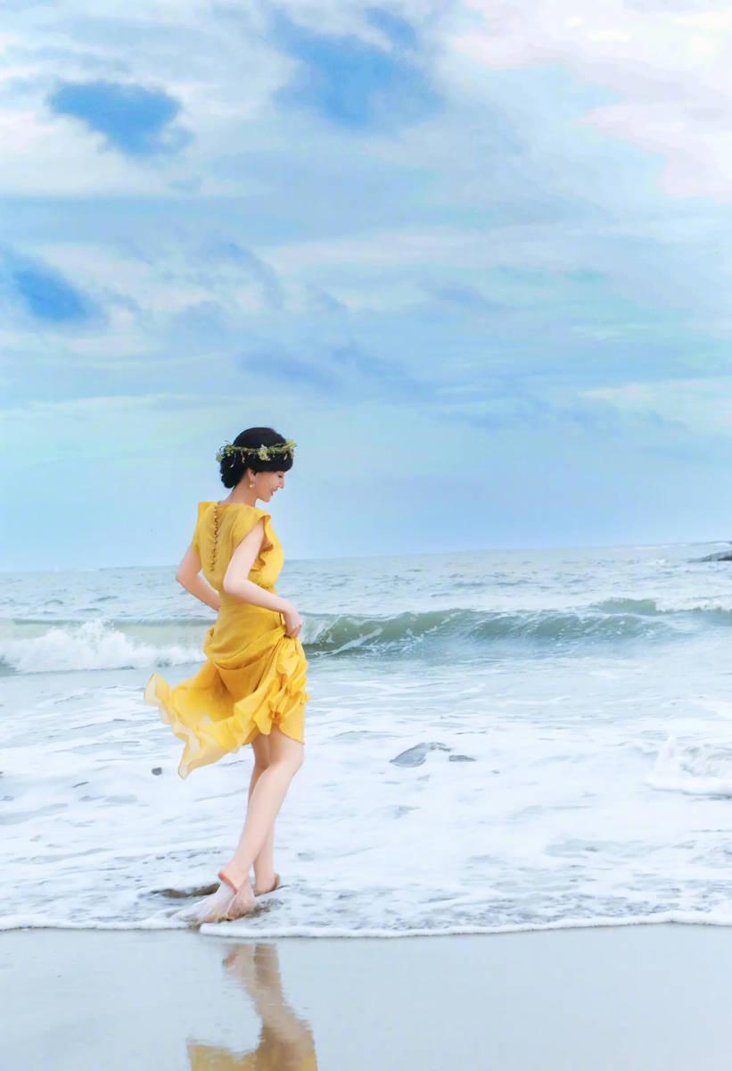 海浪轻涌,礁石如琴。一位身披鹅黄长裙的女子赤足起舞,银发在阳光下泛起柔光——这是71岁的赵雅芝在社交平台晒出的最新海边写真。