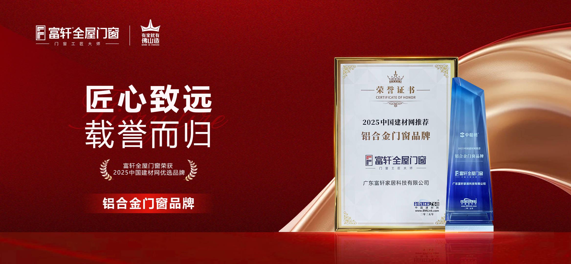 2025年5月,富轩全屋门窗凭借卓越的产品品质与优异的市场表现,在中国建材网年度评选中脱颖而出,荣获“2025中国建材网推荐铝合金门窗品牌”荣誉。这一奖项不仅是对富轩品牌实力的肯定,更彰显了其在高端门窗定制领域的行业地位。