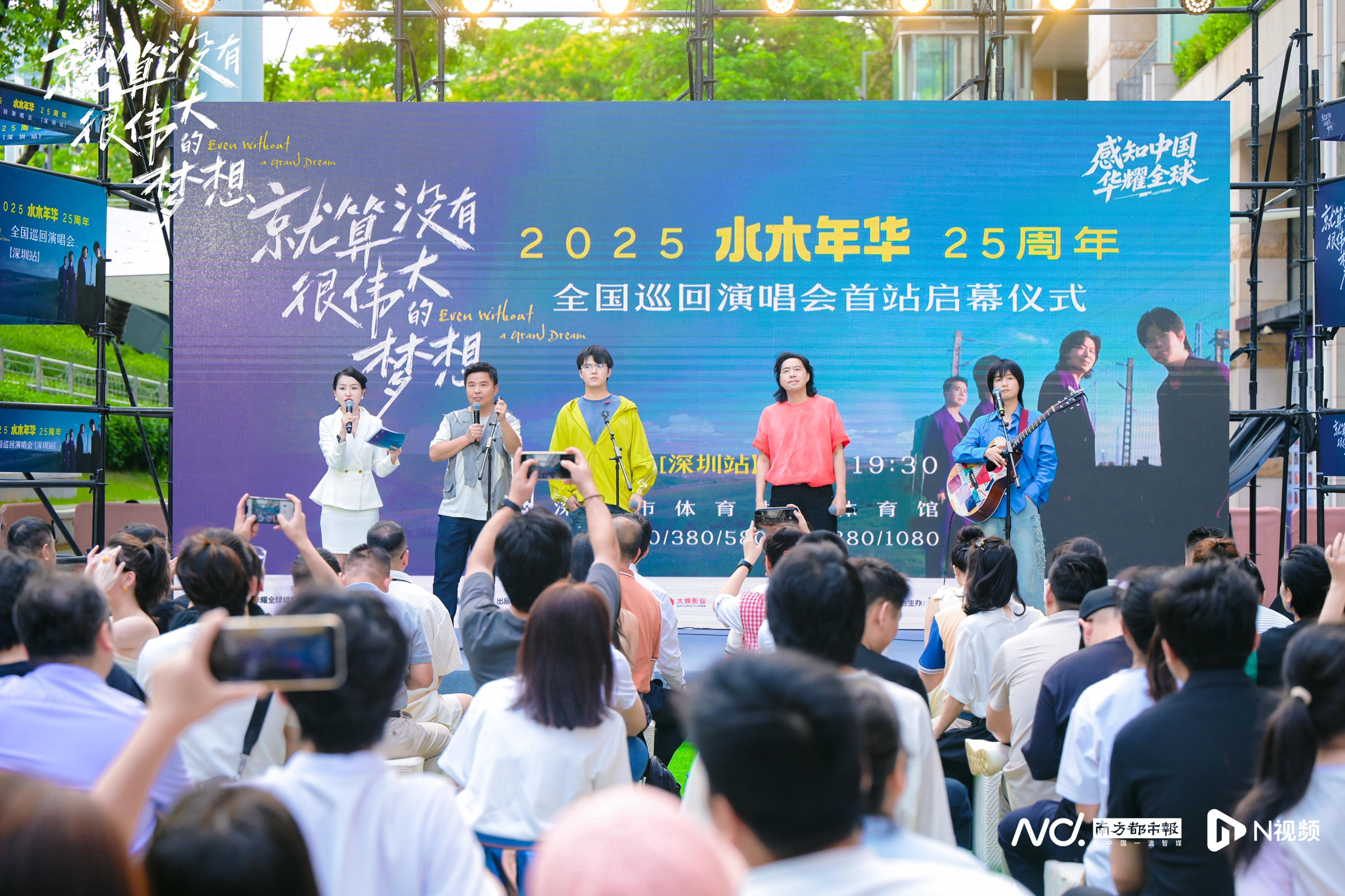8月10日下午,深圳福田区福华一路领展中心城举办了一场特殊活动——水木年华25周年全国巡回演唱会首站启幕仪式。在现场的倒计时声中,大屏幕点亮,标志着本次以“就算没有很伟大的梦想”为主题的巡演正式启程。