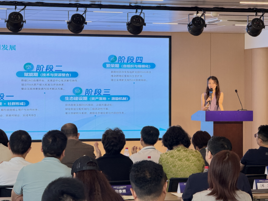 大会伊始,新文旅 RWA 孵化器负责人晨希担任主持,为活动拉开序幕,介绍了到场嘉宾及活动核心议程。随后,大湾区 RWA 孵化器执行主席、鸿铭资本创始合伙人 Diana 发表题为《RWA 如何重塑未来商业新体系》的主题演讲,从政策解读、稳定币发展、海内外 RWA 行业现状等维度切入,深入分析了 RWA 技术在商业领域的应用潜力,并分享了大湾区 RWA 孵化器的未来布局,为现场观众勾勒出 RWA 创新金融时代的机遇蓝图。