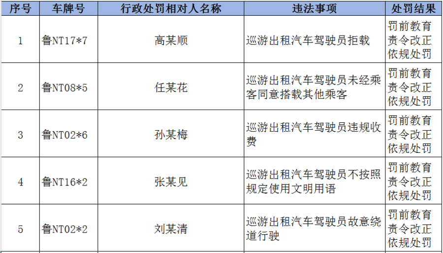 为进一步加大对无证非法营运“黑出租”“黑网约车”的打击力度,切实提升出租汽车行业的整体服务水平与质量,保障道路运输客运市场稳定、健康、有序发展,近期,德州市交通运输综合执法支队在主城区范围内共查处违法违规行为42起,并予以曝光,希望广大从业者能够高度重视,引以为戒。现将具体情况通报如下: