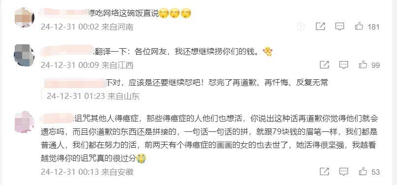 另一个因诅咒网友得癌掉粉超300万,最近试探性复出反而声称“我原谅了自己不代表原谅了你们”。