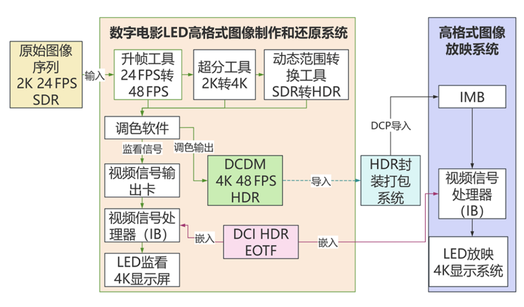 图7 数字电影LED高新技术格式图像制作和还原系统架构