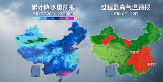 △累计降水量与过程最高气温预报(中央气象台/发)