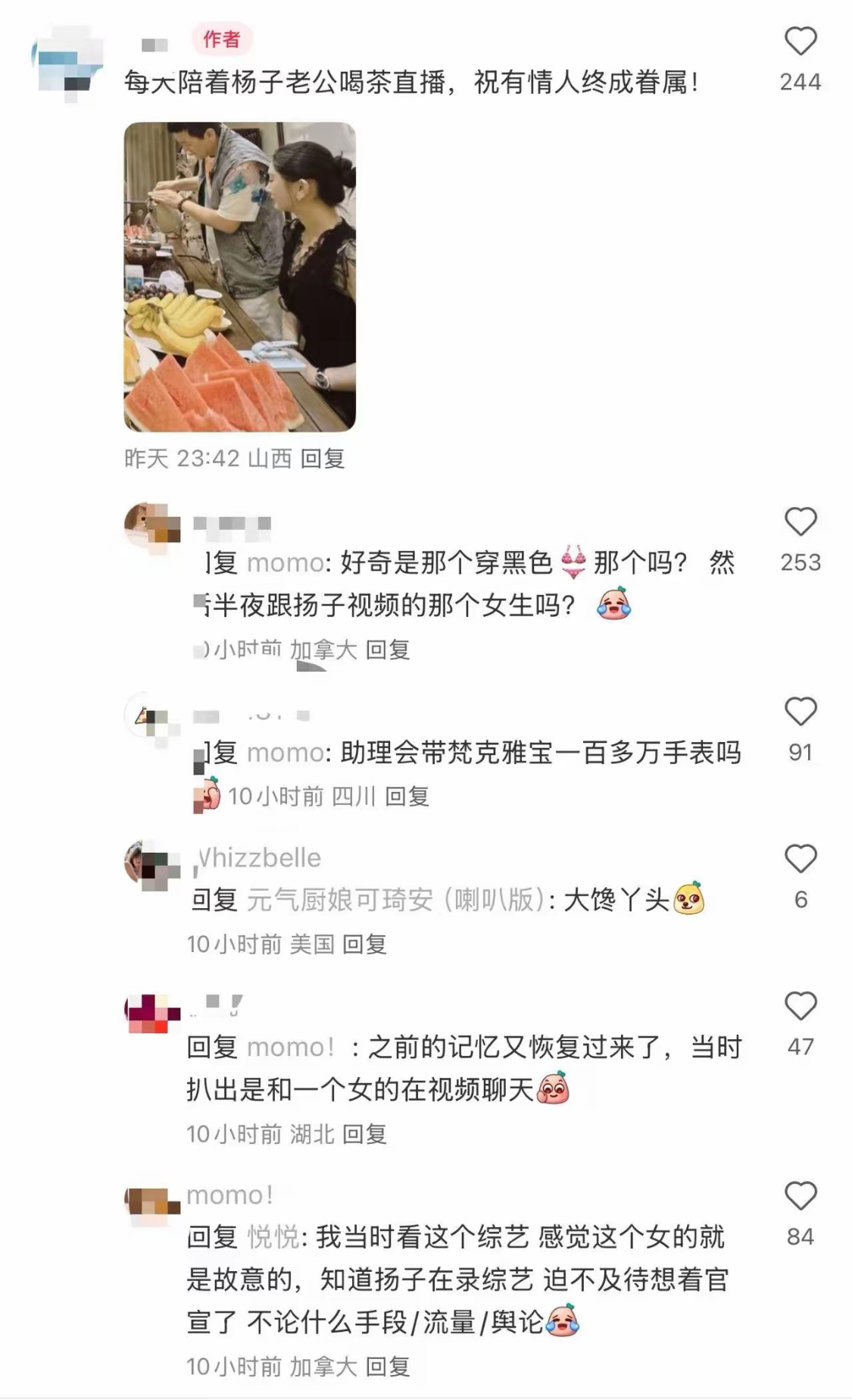 其实早有端倪。此前就有网友拍到李隽子每天陪杨子喝茶,当时博主还留言 “祝有情人终成眷属”,没想到两人的进展如此之快。李隽子身材高挑,年仅 23 岁,是典型的 00 后,与 50 岁的杨子之间,有着不小的年龄差。