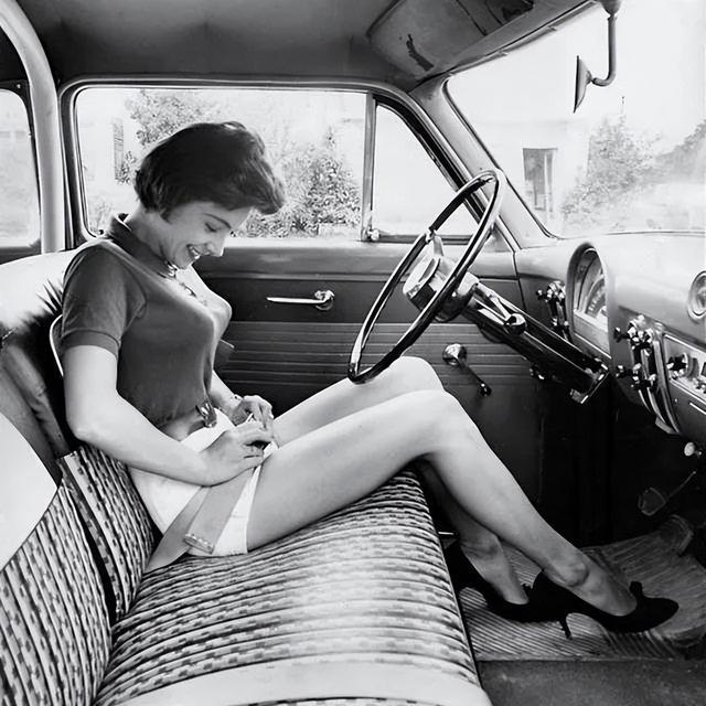 女孩与早期的汽车安全带,20世纪50年代。【Google】