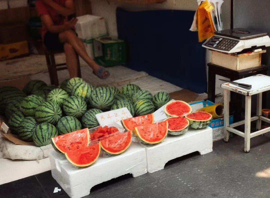 清晨的菜市场,西瓜堆成小山,瓜农的刀锋一闪,鲜红的瓤便露了出来,黑籽嵌在沙质的果肉里,像散落的黑玛瑙。买瓜的人总要拍一拍,听那"咚咚"的闷响,仿佛在叩问夏天的门。隔壁摊位的阿婆正剥着莲子,青绿的莲蓬在她指间翻转,莲子"噗噗"地落入盆中,带着晨露的清气。