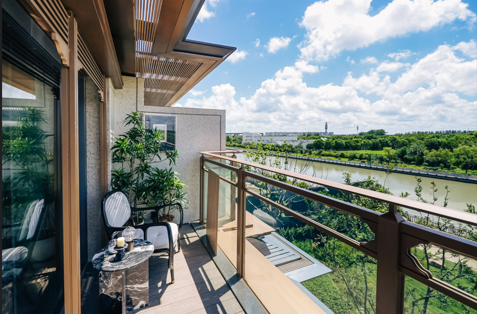 在上海核心区宅地容积率动辄3.0以上的当下,「颂墅」约1.2的容积率本身就是 “奢侈品”。更难得的是,项目别墅组团以纯墅区规划,拒绝“高低配”,仅规划166套联排与叠墅,意味着每一户都能享受同等的低密尺度,建筑与自然和谐共生。示范区首次亮相,嘉宾们跟随工作人员进入示范区,沿着大寨河与姚家浜双水系环抱的水岸拾阶而入,浦江郊野公园的绿意与墅区景观相融,“推窗见公园,出门邻水岸” 的意境扑面而来,更是让“大隐于市”的栖居理想有了具象表达。