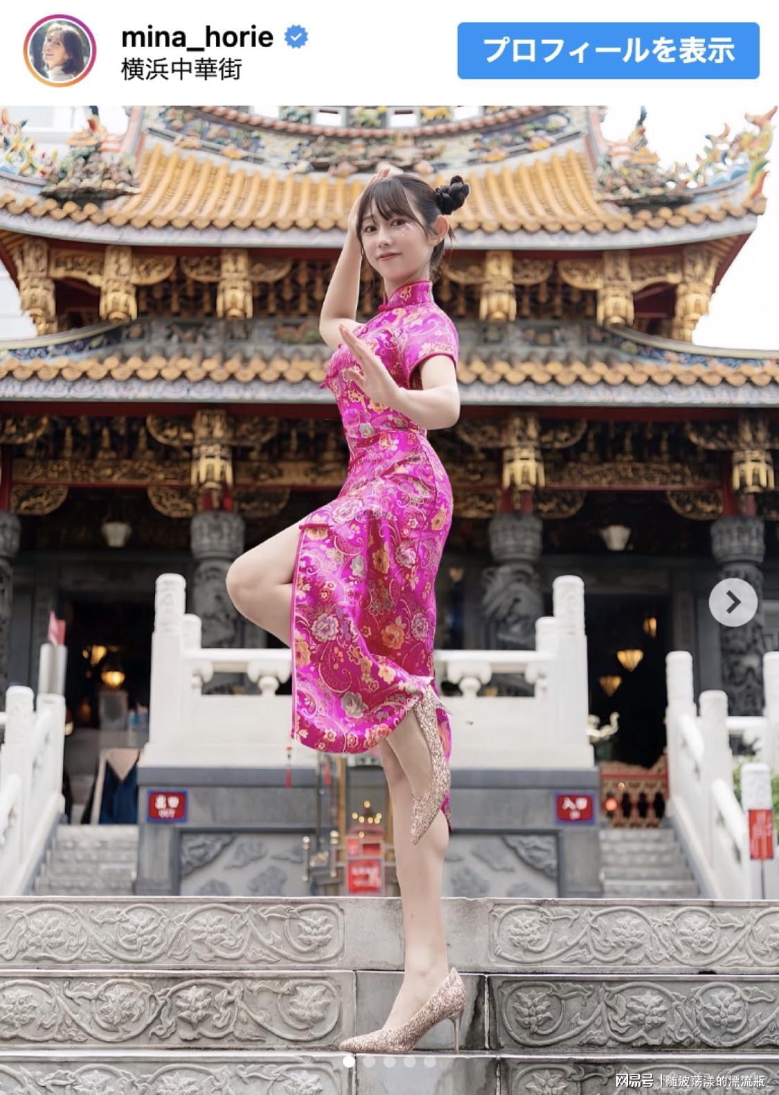 堀江配文"偶尔尝试...粉色旗袍,怎么样?"的这组照片拍摄于横滨中华街。公开的多张照片中,她身着粉色旗袍对镜头摆出各种姿势。她在文中喃喃道"第二张的小腿肌肉..."——该照片确实清晰展现了从裙摆下露出的健美小腿线条。