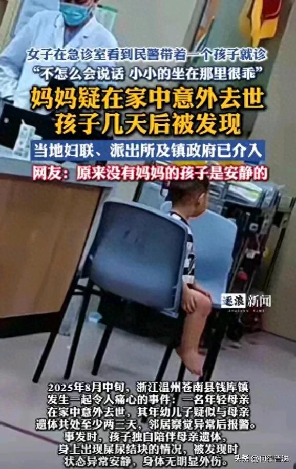 据介绍,一名年轻母亲在家中意外去世,其年幼儿子疑似与母亲遗体共处至少两三天,邻居察觉异常后报警。