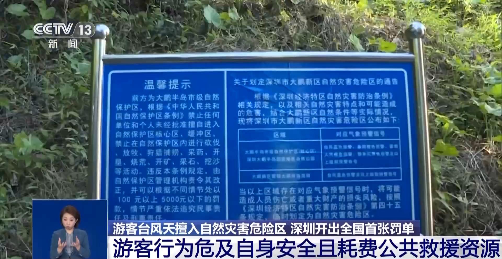 本次是深圳市依据《深圳经济特区自然灾害防治条例》,针对“未经许可擅自进入临时划定的自然灾害危险区”行为开出的首张罚单,也是全国首张依据自然灾害综合法规开出的罚单。