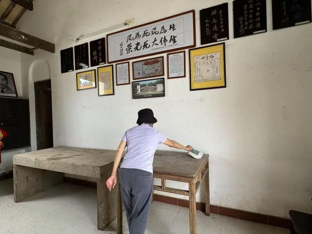 故居院内面积两百多平方米,院子里的柠檬树结了很多果子,散发着柠檬的清香。院内有一间面积不大的平房,客厅右侧还摆放着符克读小学时用过的一张宽大书桌,书桌老旧颜色发乌,左右墙面挂着符克和家人的照片、烈士证明书等物件,左右两边的耳房堆放着杂物。
