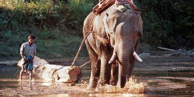 1989年,泰国禁止砍伐天然森林之前,大象曾是泰国木材产业的重要组成部分。20世纪初,泰国境内生活着近10万头大象,其中数千头被人类奴役,死在了运输木材的路上。