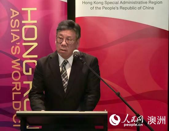 香港驻悉尼经贸办处长庄国民在活动上致辞(摄影 杨星月)