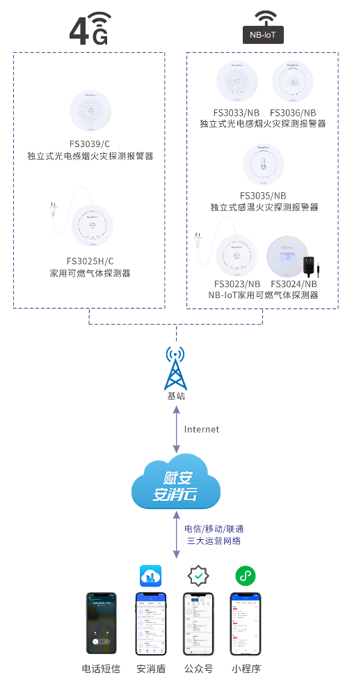 依托运营商成熟的网络架构,Forsafe赋安的4G、NB-IoT技术赋予系统更可靠的通信保障: