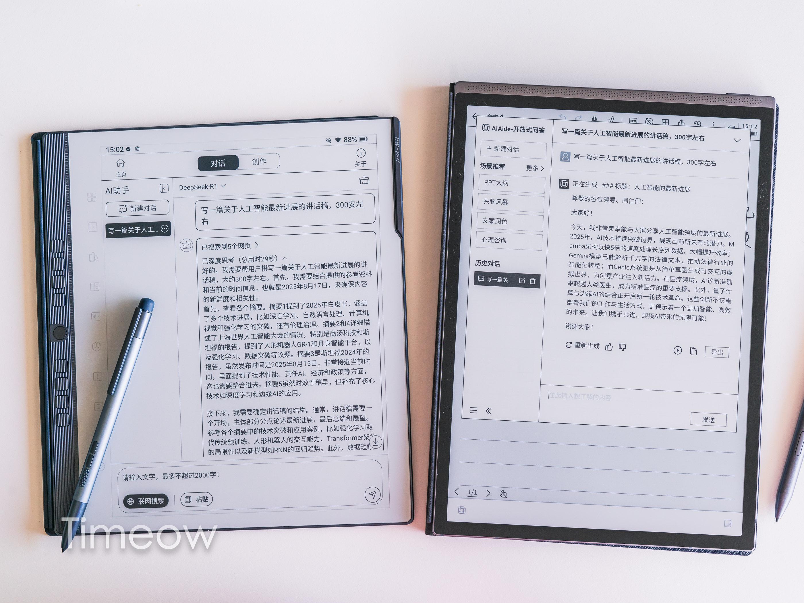 通过各自的AI大模型,两款办公本都能实现会议纪要整理、AI辅助创作等诸多功能。