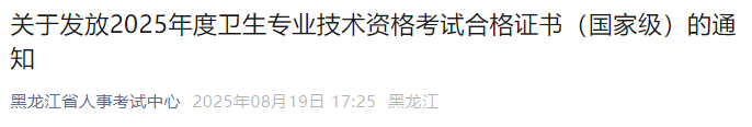 2025年度卫生专业技术资格考试合格证书(国家级)于2025年8月20日开始发放,现将有关事宜通知如下: