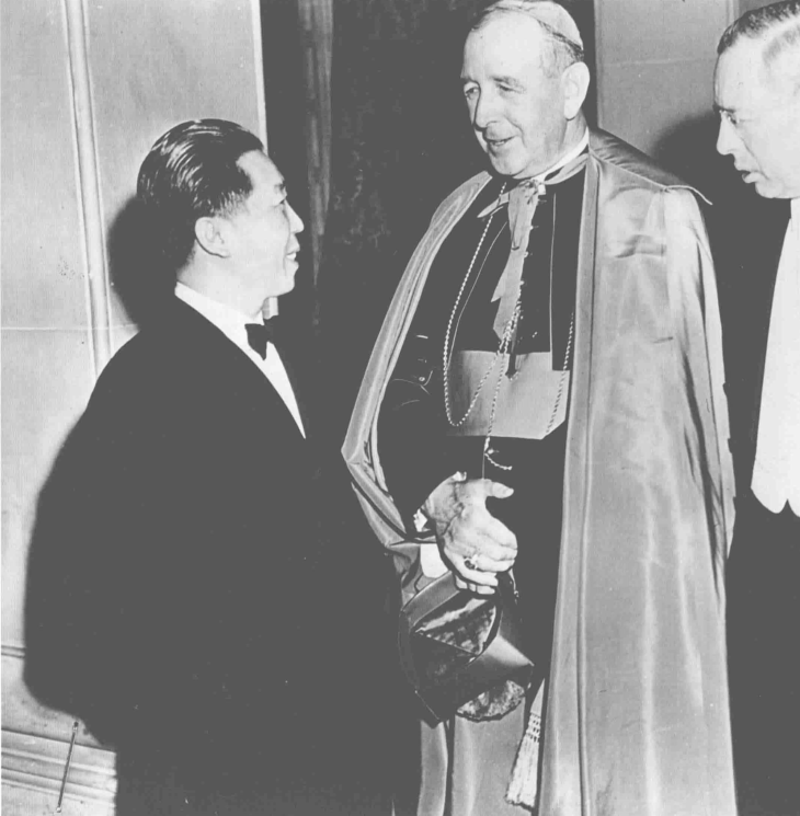 他们分别是中国驻美大使魏道明和美国洛杉矶天主教大主教约翰·坎特韦尔。