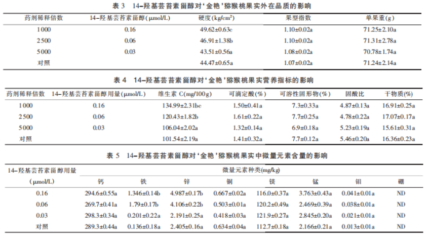 图4 14-羟基芸苔素甾醇对黄心猕猴桃品质的提升【6】