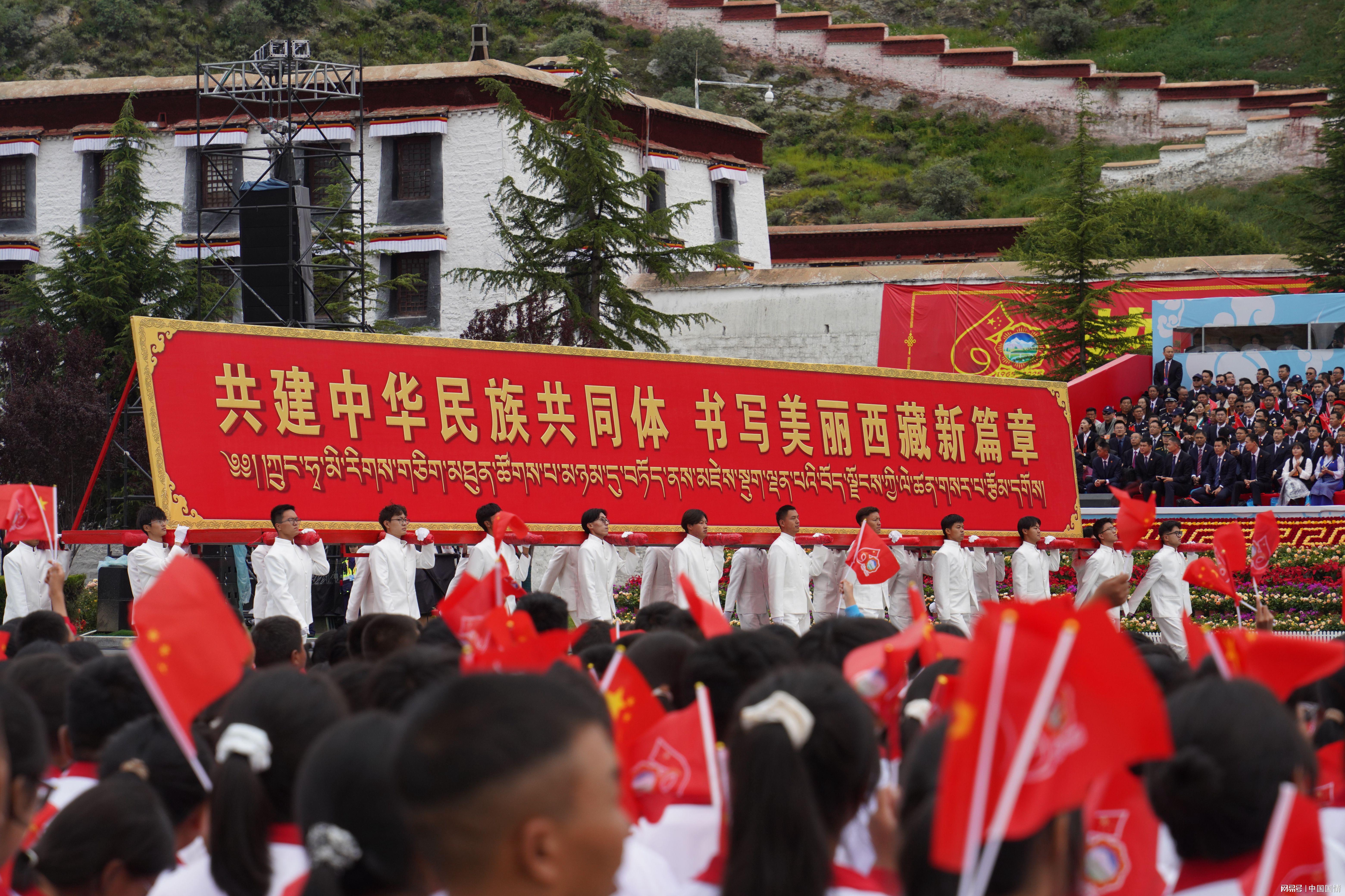 中国网拉萨8月21日讯(记者 胡俊 李颖)21日上午,拉萨市布达拉宫广场旌旗招展、欢声如潮,西藏自治区成立60周年庆祝大会在这里隆重举行。约2万名西藏各族各界干部群众欢聚一堂,共同见证这一重要时刻。