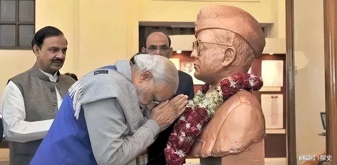 莫迪虔诚膜拜的这座雕像,就是钱德拉.鲍斯。