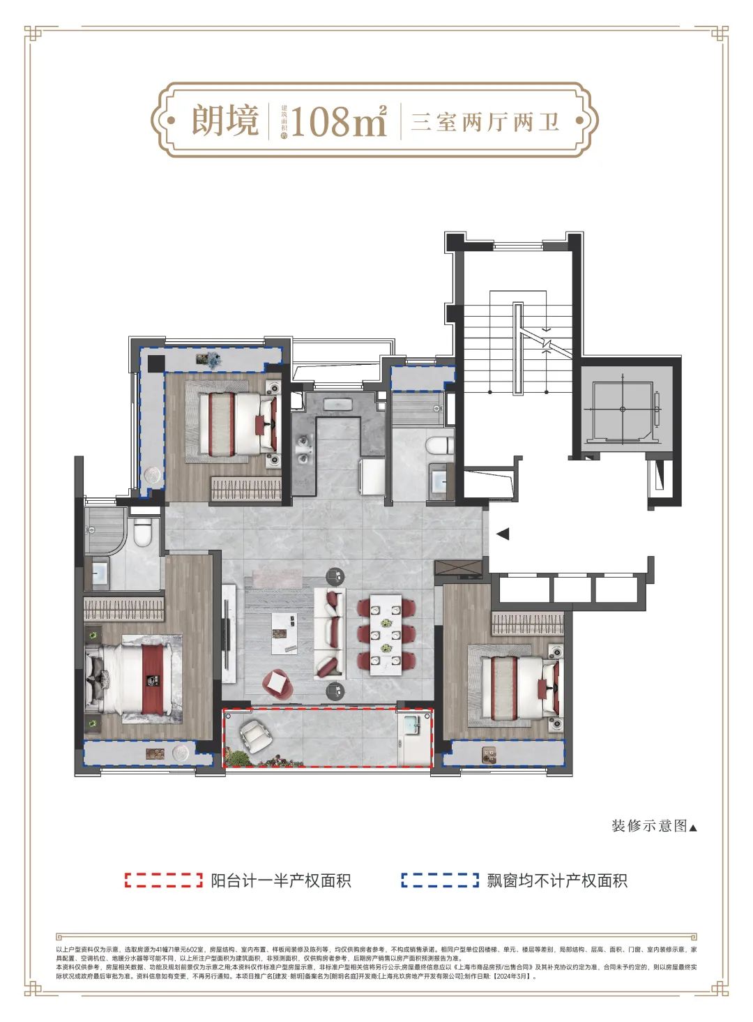 (建筑面积约108平米展示样板间 非交付标准 仅供参考 交付标准以合同约定为准)