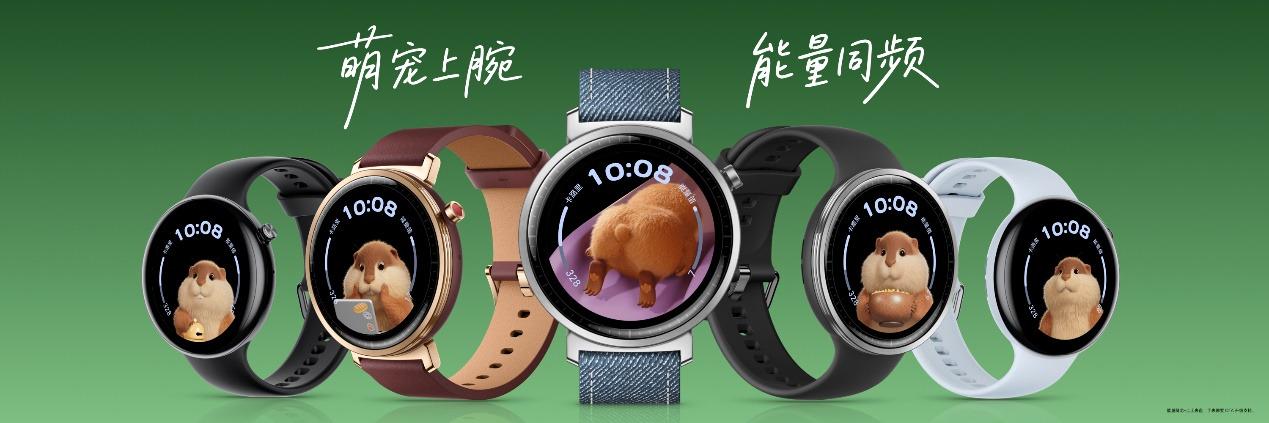- 手表Fit:以能量萌宠表盘为核心交互符号,通过21种萌宠动态表情(如能量低时蜷坐发呆、高时欢快跳跃),将健康数据转化为可感知的情绪价值。雅致版丹宁蓝皮表带与棕色真皮表带,进一步强化“时尚配饰”属性。
