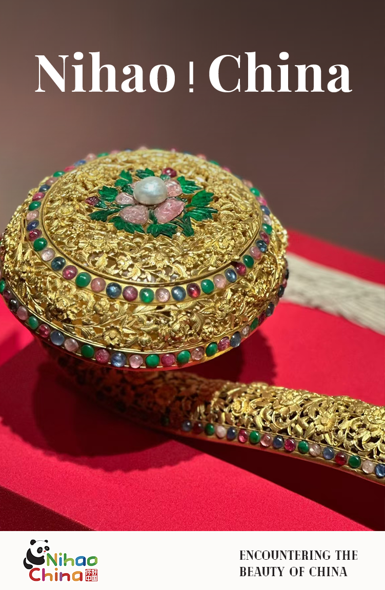 黄丝穗缀于尾端,结饰为“寿”字图案,寓意长寿吉祥。整体宝石环绕、金光交映,尽显皇家艺术的华丽。