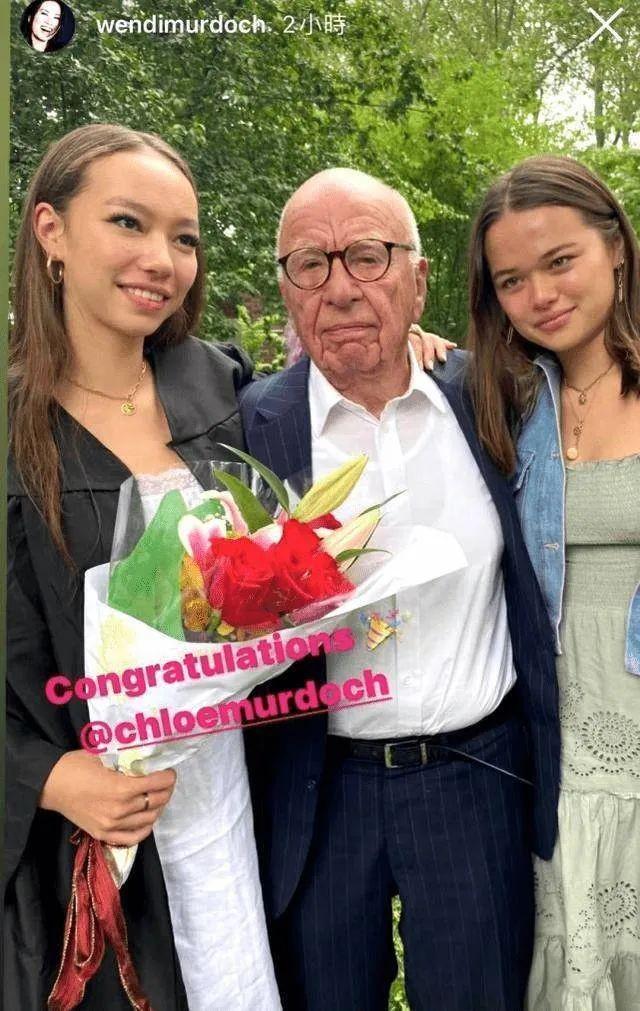 老来得女,2个女儿漂亮可爱,又被妈妈教导得聪明乖巧,默多克特别宠这两个小棉袄。