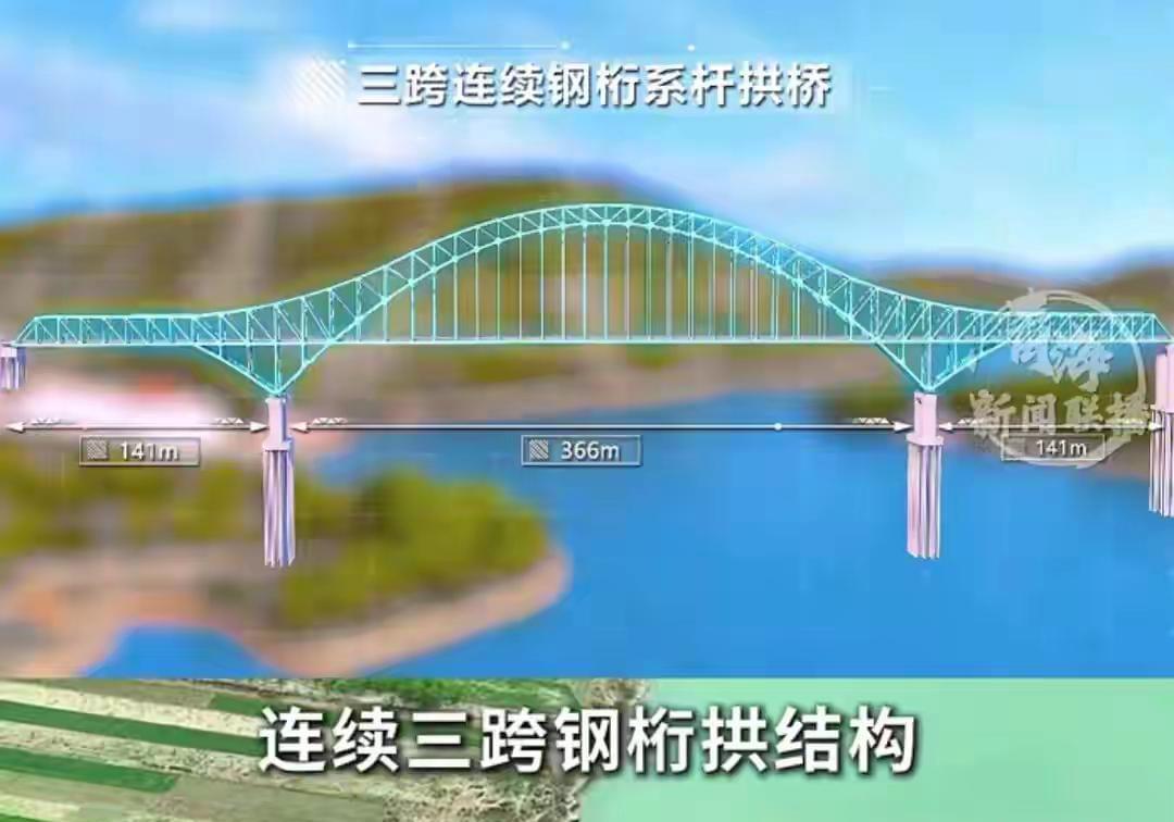 尖扎黄河特大桥是世界最大跨度双线铁路钢桁拱桥,主跨达366米,全长1596.2米,采用141米 + 366米 + 141米三跨连续钢桁系杆拱桥设计,拱顶距黄河水面130米,相当于40多层楼高。
