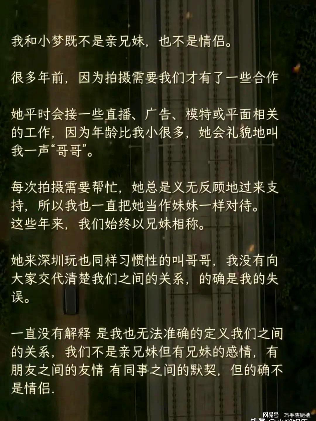 在这次声明中,他以平实而真诚的语言,表达了对小梦的感激,并重申他们之间的关系并不属于情侣或兄妹的范畴。