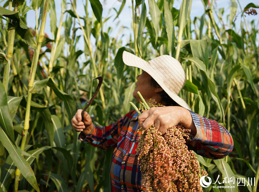 宜宾帮扶工作队带领恩阳村民种上了高粱,为宜宾白酒产业提供优质原材料,实现双赢。人民网记者 王波摄