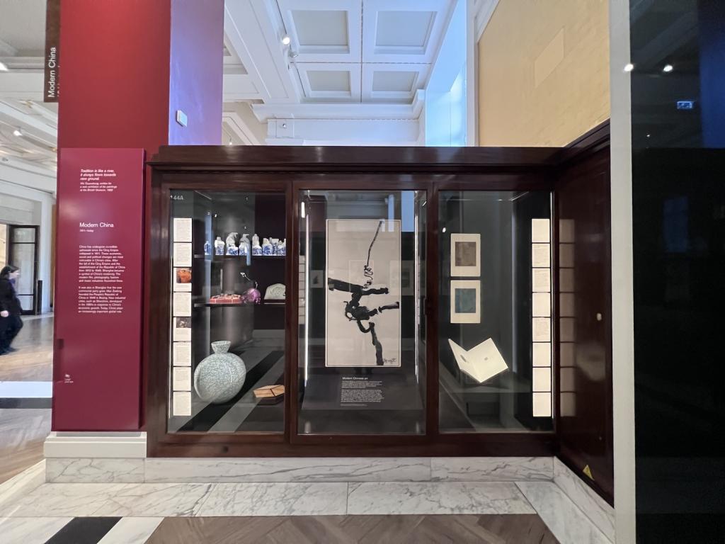 大英博物馆常设展,丁乙作品《柒拾个圆》位于图中展柜右下。 图片由丁乙工作室提供