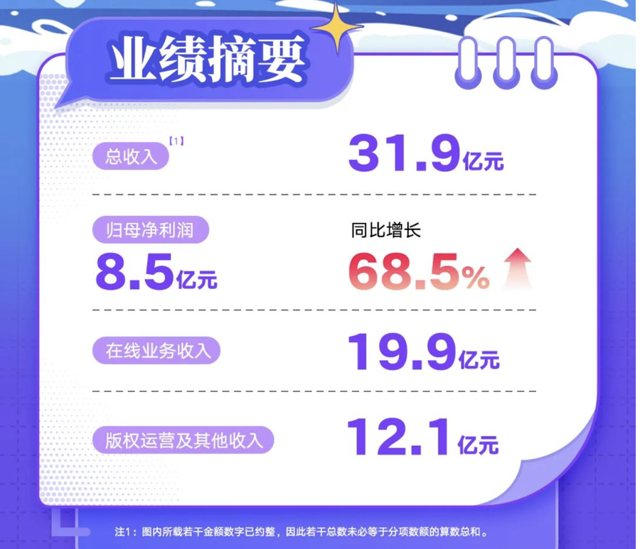 ▷阅文集团发布2025年中期业绩报告。报告显示,2025年上半年,阅文总收入31.9亿元,归母净利润同比增长68.5%至8.5亿元;在线阅读内容生态持续繁荣,新增作家20万,新增作品41万,在线业务收入同比增长2.3%至19.9亿元;IP运营业务方面,动漫,影视持续发力,短剧爆款率显著提升。