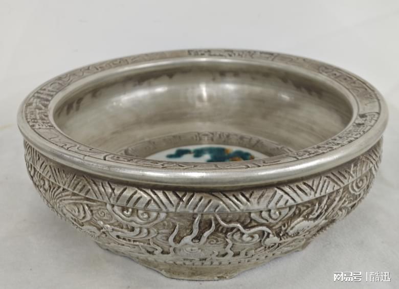 这件“龙凤戏珠、五子送桃”聚宝盆高13cm,口径40cm,盆面有,招财进宝、八方来财、日进斗金;盆底有,财源广进、金玉满堂、福寿皆全、五子登科;盆底面,粉彩瓷画,五子祝寿;底款,光绪年制、龙凤戏珠;周边,两龙两凤戏珠!造型大气稳重。盆沿宽阔,以精致的回纹等传统纹样装饰,富有韵律感。盆内中心绘有“五子送桃”图,五个孩童神态各异,天真活泼,围绕着寿桃,充满生活气息;周边辅以“龙凤戏珠”图案,龙与凤身姿矫健,栩栩如生,整体构图饱满且层次分明,展现出工匠高超的绘画与布局能力。聚宝盆将绘画与瓷器制作工艺完美结合,体现了清代瓷器装饰艺术的高超水准。图案中的“龙凤戏珠”象征着吉祥、尊贵与权威,“五子送桃”则寓意多子多福、长寿安康,承载了丰富的传统文化内涵和美好的祈愿。它不仅是一件实用的生活器具,更是研究清代民俗文化、绘画艺术以及制瓷工艺的重要实物资料,具有很高的艺术收藏价值。