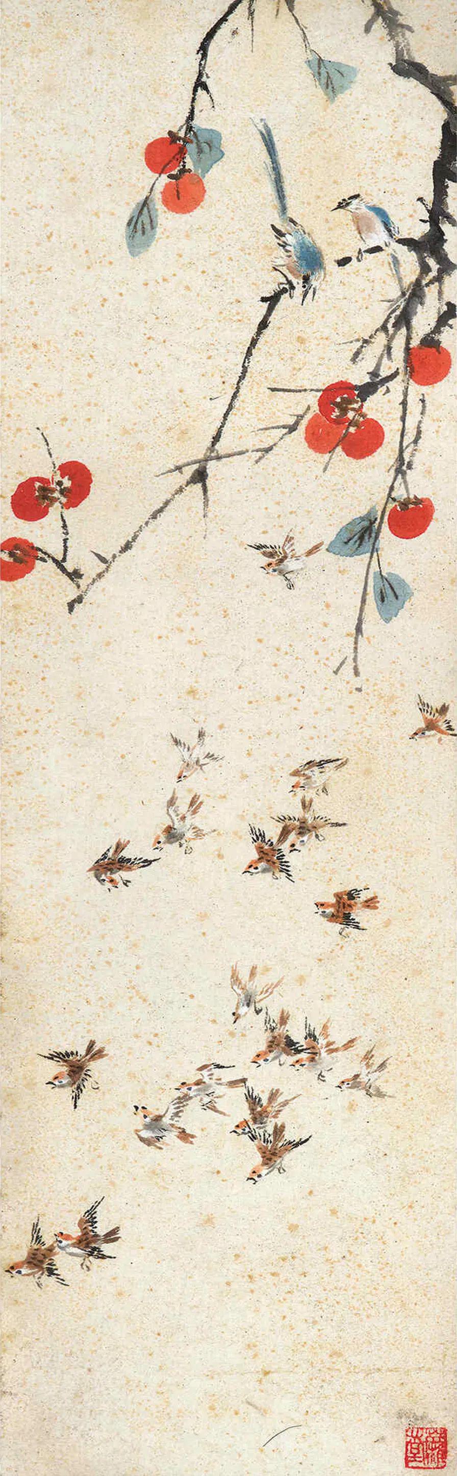 王雪涛花鸟画最重要的是画中的情趣,画家很善于截取一些转瞬即逝的情趣小景,即使是最微不足道的昆虫,亦生动可爱;即使是一些平凡、简单的场景,亦清新活泼、生意盎然。