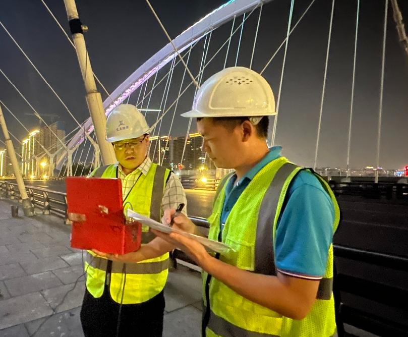 在更换斜拉杆时,加装临时监测设备,对拱圈变形趋势、斜拉杆索力变化及结构关键部位应力值进行实时追踪监测,换索焊接的专业技术人员,对每一个作业细节都精益求精,每一道施工环节都有条不紊;在焊接作业完成后,对焊缝质量全面核验,确认达标后,再进入后续挂索及张拉测试环节,确保核心构件安全;在维护锈蚀栏杆时,首次应用激光除锈新工艺与高性能水性氟碳漆,提升桥梁栏杆的维护效果与耐久性。