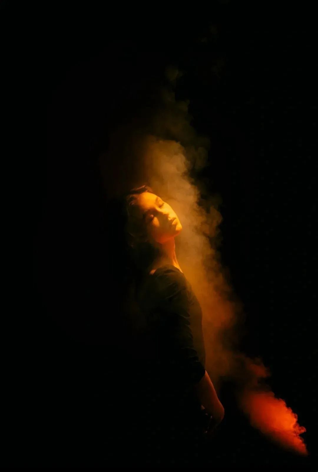 人像摄影中,薄纱的半透明特性使模特的身体轮廓若隐若现,营造出一种朦胧、神秘的美感。烟雾也有同样效果。